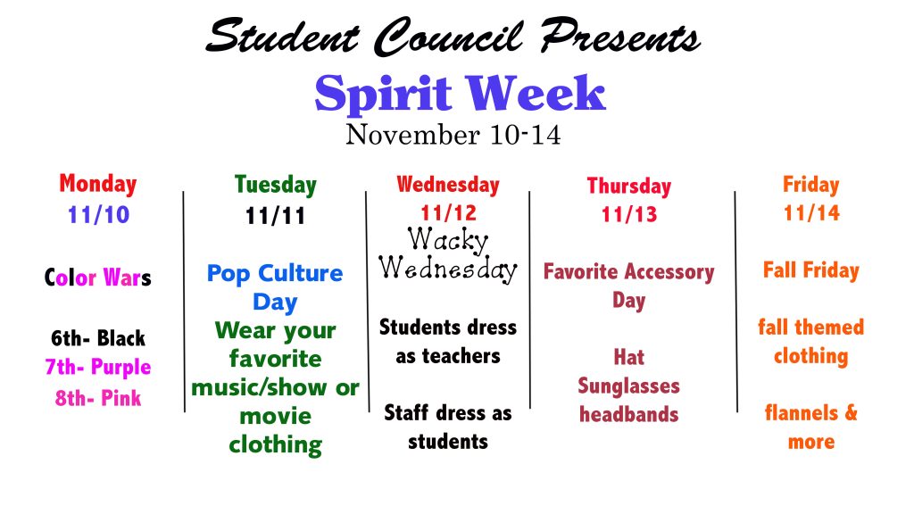 Student Council Spirit Week Themes Nov. 10-14